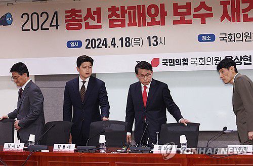 (서울=연합뉴스) 김연정 김치연 기자 = 4·10 총선 결과 수도권에서 생존한 국민의힘 일부 당선인들은 18일 조기 전당대회를 준비하는 관리형 비대위원회를 구성할 게 아니라 선거 참패를 반성하는 백서부터 만들어야 한다고 촉구했다.