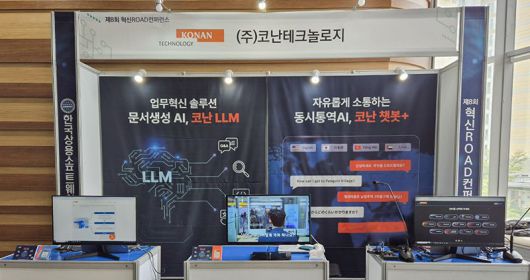 코난테크놀로지는 이번 행사에서 자체 개발 대규모 언어모델 ‘코난LLM’과 인공지능(AI) 동시통역솔루션 ‘코난 챗봇+’(코난 챗봇 플러스)를 소개하는 부스를 운영했다. 최근 공공기관의 클라우드 서비스형 소프트웨어(SaaS) 전환과 AI 실무 도입 증가세에 따라 많은 관심과 문의를 받았다.