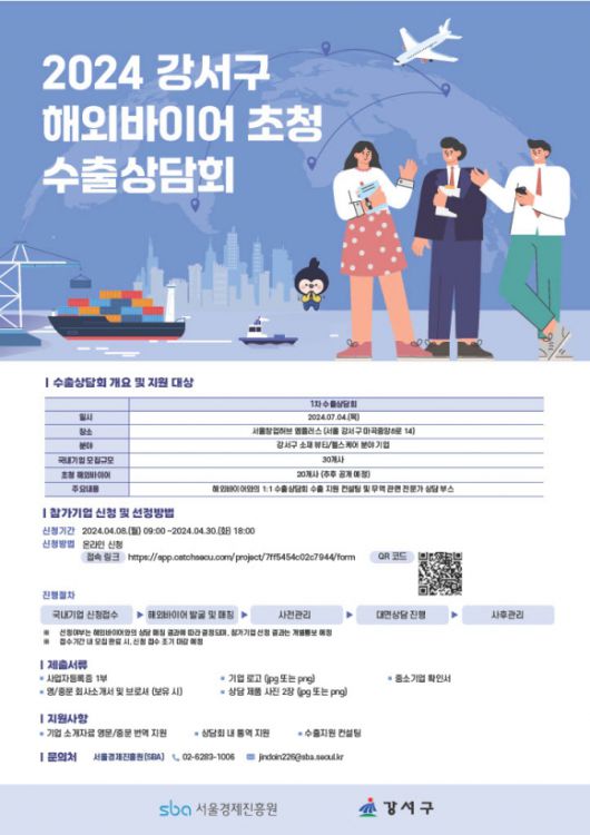 참여를 희망하는 기업은 구 누리집에 있는 안내문의 QR코드를 통해 온라인으로 신청하면 된다. 진교훈 구청장은 “수출상담회는 수출 실적 증진을 통한 기업의 성장뿐만 아니라 지역경제 활성화에 큰 도움이 될 것”이라며 “해외 진출을 희망하는 우수한 중소기업들의 많은 관심과 참여 부탁드린다”라고 말했다.