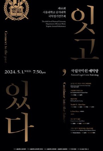 [이데일리 이윤정 기자] 우리의 전통음악과 현대의 창작음악이 만나는 의미있는 무대가 마련된다. 오는 5월 1일과 2일 서울 서초구 국립국악원 예악당에서 열리는 제66회 서울대학교 음악대학 국악정기연주회 ‘잇고, 있다’이다.