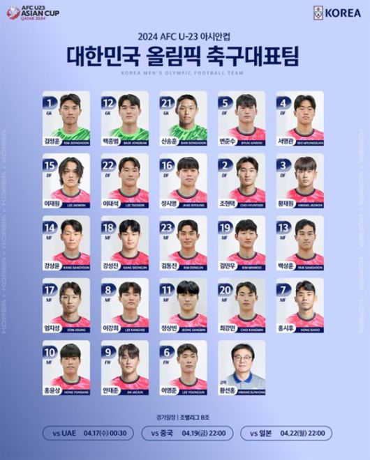 2024 AFC U-23 아시안컵에 참가하는 한국올림픽 축구대표팀의 배번명단 공개 (사진출처=대한축구협회) |