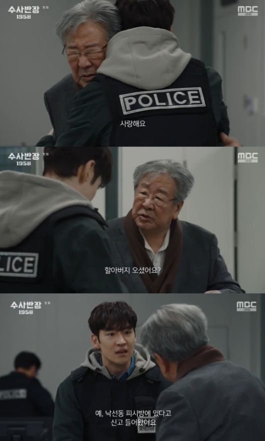 그는 자신의 뒤를 이어 경찰로 근무 중인 손자(이제훈)을 만나 양말과 떡 등을 건넸다. 그러자 손자는 따뜻한 포옹으로 화답한 후 곧바로 출동에 나섰다.