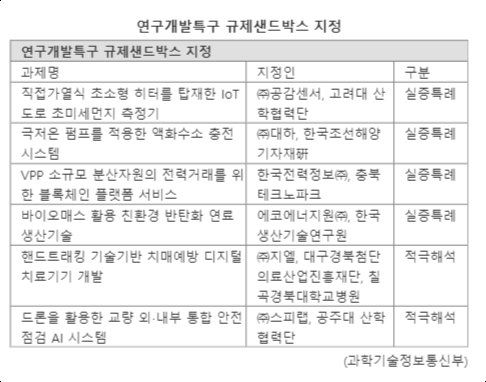 특구내 신기술 6건 실증특례 지정