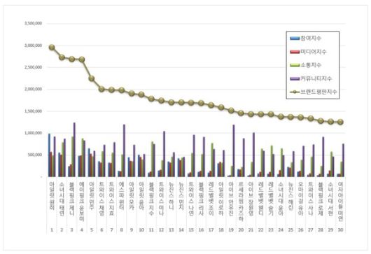 브랜드 평판지수는 소비자들의 온라인 습관이 브랜드 소비에 큰 영향을 끼친다는 것을 찾아내 브랜드 빅데이터 분석을 통해서 만들어진 지표이다. 걸그룹 개인 브랜드평판 분석을 통해 걸그룹 개인 브랜드에 대한 긍부정 평가, 미디어 관심도, 소비자들의 관심과 소통량을 측정할 수 있다. 걸그룹 개인 브랜드평판 분석에는 브랜드 영향력을 측정한 브랜드 가치평가 분석도 포함했다.