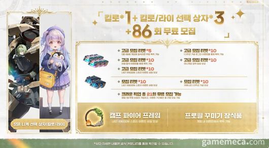 1.5주년 업데이트 시점은 4월 25일이며, 이벤트를 통해 최대 86회 무료 모집 기회를 획득할 수 있다. 아울러 신규 니케 킬로와 SSR 니케 선택 상자 3개, 캠프 파이어 프레임, 프로필 꾸미기 장식품 등을 받을 수 있다.