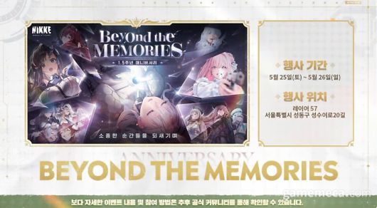 시프트업은 22일, 니케 공식 유튜브 채널을 통해 1.5주년 기념 방송을 방영했다. 이를 통해 1.5주년 기념 업데이트 및 행사 관련 소식을 전했다. 우선 1.5주년 기념 행사는 오는 5월 25일부터 26일까지 서울 성동구에 위치한 레이어57에서 열린다. 지난 추억을 담은 전시장, 1.5주년 기념 한정 굿즈 판매, 코스어 7명이 참여하는 코스프레 무대, 지상으로 나아가는 메인 스토리 방향을 담은 지상 에너지 카페 등이 운영된다. 카페에는 메이드 니케가 유저들을 맞이한다. 아울러 홍대입구역 3번, 4번 출구에 니케 지하철 광고가 게시된다.