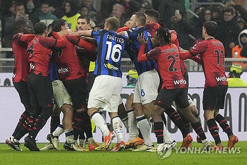 세리에A를 대표하는 라이벌 매치답게 경기 초반부터 양 팀 선수들 사이에서 신경전이 일어났다. 전반 8분 볼 경합 과정에서 바렐라가 에르난데스 태클에 걸려 넘어지자 양 팀 선수들이 몰려 들어 설전을 벌였다.