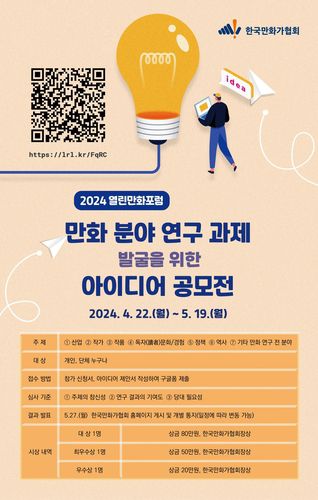 참여는 한국만화가협회 홈페이지 또는 공모전 포스터 QR코드를 통해 할 수 있다.