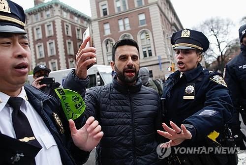 지난 18일 미 컬럼비아대에서 시위 학생을 끌어내는 뉴욕 경찰 |