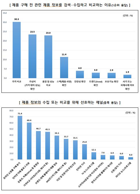 소비자원에 따르면 사전 설문조사를 통해 10명 중 7명(71.0%)이 제품 구매 전 관련 정보를 검색하고 수집한다는 답을 얻었다.