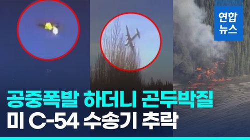 (서울=연합뉴스) 미국 알래스카주에서 23일(현지시간) 더글러스 C-54 스카이마스터 수송기가 인근 강에 추락했다고 AP 통신 등이 알래스카주 경찰을 인용해 이날 보도했습니다.