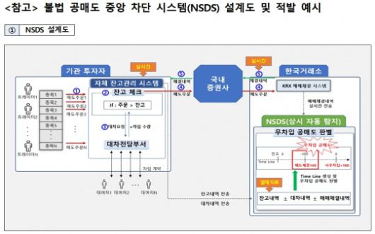 [한국금융신문 정선은 기자] 금융당국이 불법 공매도 방지 전산시스템 구축안을 공개했다. 기관투자자 자체 전산을 통해 무차입공매도를 사전 차단하고, 차단되지 않은 무차입공매도는 중앙차단 시스템(NSDS, Naked Short Selling Detecting System)을 통해 상시 자동 적발하는 게 골자다.