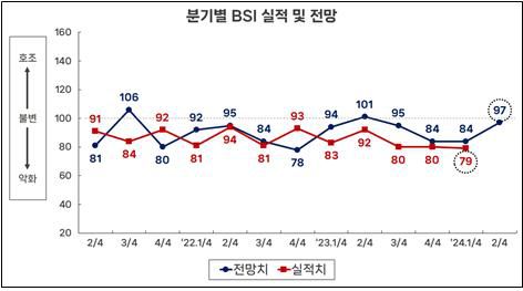 BSI가 기준치인 100보다 높으면 경기 전망에 대한 긍정 응답이 부정보다 많고, 100보다 낮으면 부정 응답이 더 많은 것을 의미한다.
