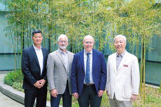 박헌수(왼쪽부터) 삼성전자 MX사업부 디지털헬스팀장(부사장), 비키퍼AI CEO인 마이클 블룸 박사, 밀스 페닌슐라 메디컬센터 당뇨병연구소장인 데이비드 클로노프 박사, 삼성의료원 AI연구센터장인 정명진 삼성서울병원 영상의학과 교수가 기념촬영을 하고 있다. [삼성전자 뉴스룸 캡처] |