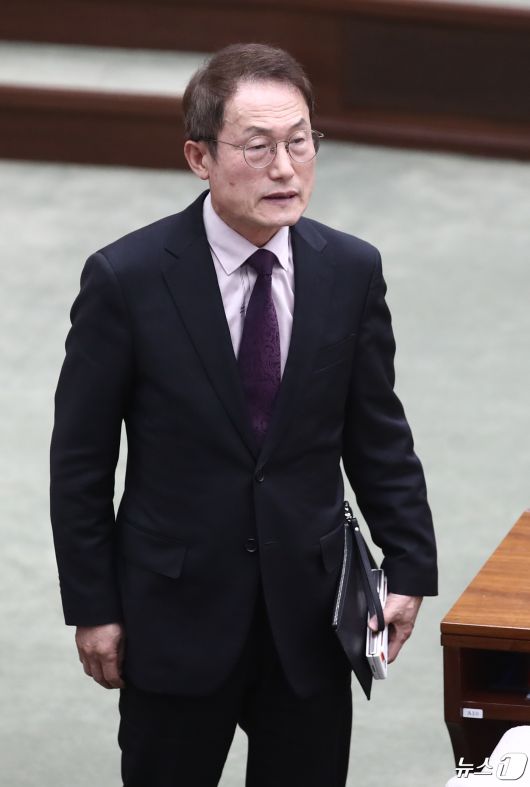 (서울=뉴스1) 이광호 기자 = 조희연 서울시교육감이 26일 오후 서울 중구 서울특별시의회 본회의장에서 열린 제323회 임시회 제3차 본회의를 마치고 나서며 생각에 잠겨 있다. 이날 본회의에서는 '서울특별시 학생인권조례 폐지조례안'이 가결됐다.. 2024.4.26/뉴스1