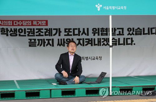 조희연 교육감은 교육청 본청에서 학생인권조례 폐지의 부당함을 알리는 천막농성에 돌입했다. 이날 오후 5시30분 시작해 72시간 동안 농성을 할 예정이다.