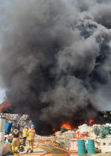 현장에 쌓인 플라스틱 폐자재가 많아 진화작업에 어려움이 있던 것으로 전해졌다.