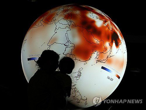 (대구=연합뉴스) 윤관식 기자 = 28일 대구 달성군 국립대구과학관을 찾은 시민들이 올해 기후 예상을 보여주는 SOS(Science On a Sphere) 시스템을 살펴보고 있다. 2024.4.28