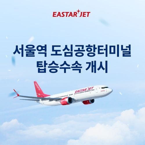(서울=연합뉴스) 임성호 기자 = 이스타항공은 29일부터 서울역 도심공항터미널에서 탑승수속 등 서비스를 제공한다고 밝혔다.