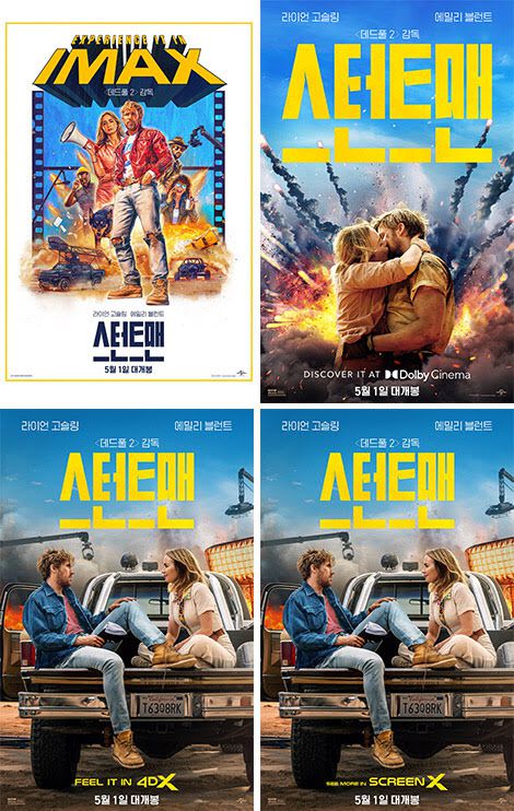 도파민 터지는 액션 시원한 팝콘무비 ‘스턴트맨’이 IMAX, 돌비 시네마, 4DX, ScreenX 상영을 확정하고 특별 포맷 포스터를 공개해 눈길을 끈다. 사람도 구하고, 영화도 구하고, X도 구하려다 X된 스턴트맨 콜트(라이언 고슬링 분)의 코미디, 액션, 로맨스 장르 풀코스 작품 ‘스턴트맨’은 5월 극장가를 사로잡을 최고의 엔터테이닝 무비로 주목받고 있기에 이처럼 다채로운 특별 포맷 상영에 대한 관심이 더욱 뜨겁다.