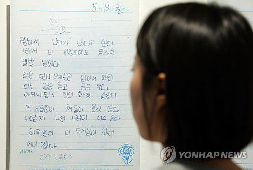흘려서 쓴 필체에서 당시 긴박했던 상황·심경이 전해진다는 듯 총 5편의 일기를 곱씹던 관람객들은 눈시울을 붉혔다.