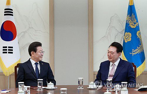 윤석열 대통령, 이재명 대표와의 영수회담 발언(서울=연합뉴스) 홍해인 기자 = 윤석열 대통령이 29일 서울 용산 대통령실 집무실에서 열린 더불어민주당 이재명 대표와의 영수회담에서 이 대표가 전한 메시지를 들은 뒤 발언하고 있다. 2024.4.29 hihong@yna.co.kr ▶제보는 카카오톡 okjebo▶연합뉴스 앱 지금 바로 다운받기~▶네이버 연합뉴스 채널 구독하기<저작권자(c) 연합뉴스, 무단 전재-재배포, AI 학습 및 활용 금지>