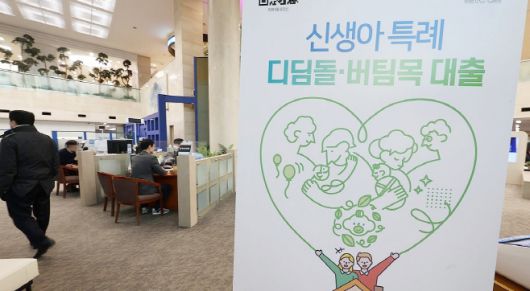 서울 한 시중은행에 신생아 특례 대출 안내 배너가 설치돼있다./연합뉴스 |