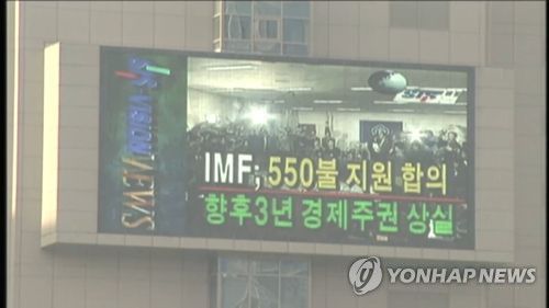 1997년 IMF 외환위기 당시 뉴스 화면 |
