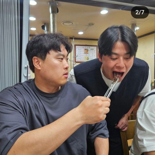 류현진 소속사 99코퍼레이션은 1일 류현진이 소속팀 후배들과 소고기 파티를 즐긴 순간을 공개했다. 전날 류현진은 대전한화생명이글스파크에서 에스에스지(SSG) 랜더스를 상대로 선발 등판해 6이닝 7피안타 2실점(1자책점) 하며 승리 투수가 됐다.