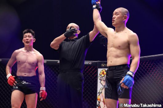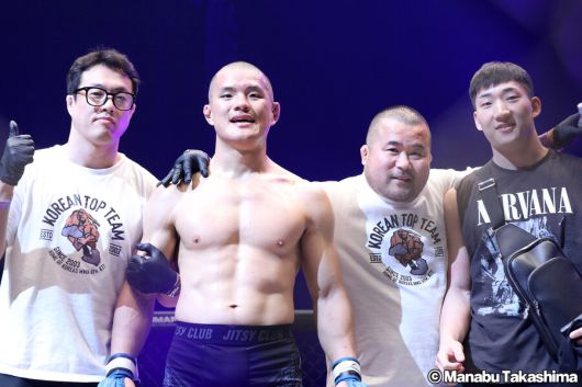 지난 29일 일본 사카이현 타치카와 스테이지 가든에서 열린 판크라스(PANCRASE) 342 라이트급 경기에서 마츠오카 다카시(33, 일본)를 3라운드 종료 3-0 판정(29-28,29-28,30-27)으로 이기고 환하게 웃었다.