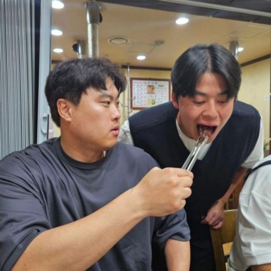 류현진의 소속사 99코퍼레이션은 사회관계망서비스(SNS)에 회식 사진을 올리며 “특급 도우미 노시환 선수에게 류현진 선수가 한우 구워서 직접 입에 넣어드렸습니다”라고 소개했다. 이 자리에는 팀 후배 노시환, 장민재가 함께 했다.
