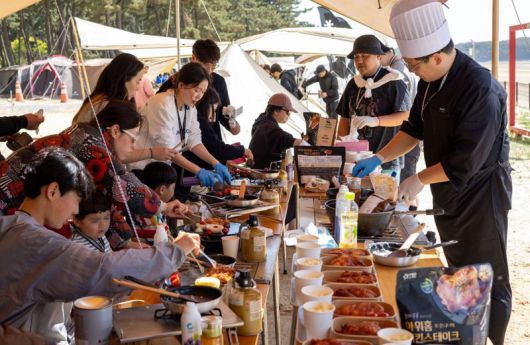 캠핑장에서 즐기기 좋은 아워홈 HMR 제품 전시와 함께 홍보도 이뤄졌다. 아워홈 치킨스테이크 오리지널, 행복한 맛남 데미와인소스, 아워홈 Oh! 우리홈밀크 등이 소개돼 좋은 반응을 얻었다고 아워홈은 소개했다.