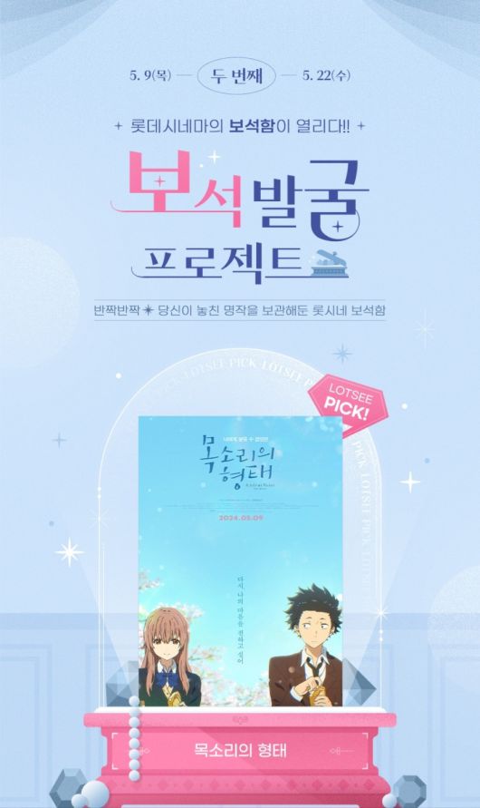 2일 롯데시네마에 따르면 '보석발굴 프로젝트' 2탄으로 '목소리의 형태'를 오는 9일 단독으로 선보인다. '보석발굴 프로젝트'는 관객들이 놓친 명작을 다시 극장에서 볼 수 있도록 준비한 롯시픽 기획전이다.