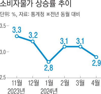 2일 통계청이 발표한 ‘4월 소비자물가동향’에 따르면 지난달 소비자물가지수는 지난해 같은 달 대비 2.9% 상승했다.