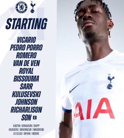 토트넘은 4-2-3-1 포메이션으로 나왔다. 굴리엘모 비카리오가 골키퍼로 나섰고 에메르송 로얄, 미키 판 더 펜, 크리스티안 로메로, 페드로 포로가 수비진을 구성했다. 이브 비수마, 파페 마타르 사르가 중원을 구축했고 손흥민, 브레넌 존슨, 데얀 쿨루셉스키가 2선에 위치했다. 히샬리송이 최전방에 이름을 올렸다.