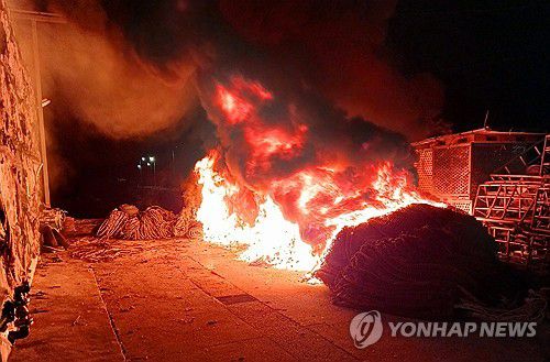 (여수=연합뉴스) 박철홍 기자 = 만취한 주민이 수산물 가공공장에 불을 질러 현행범 체포됐다.