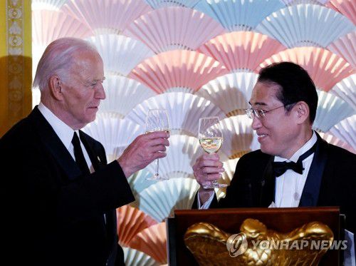 국빈 만찬서 건배하는 미일 정상 |