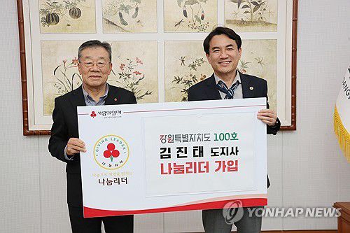 (춘천=연합뉴스) 김진태 강원도지사가 7일 강원사회복지공동모금회 '나눔리더'에 100번째로 동참하고 있다. 도 사회복지공동모금회는 1년에 100만원 이상을 기부한 사람에게 나눔리더 회원 자격을 준다. 2024.5.7 [강원도 제공·재판매 및 DB 금지]