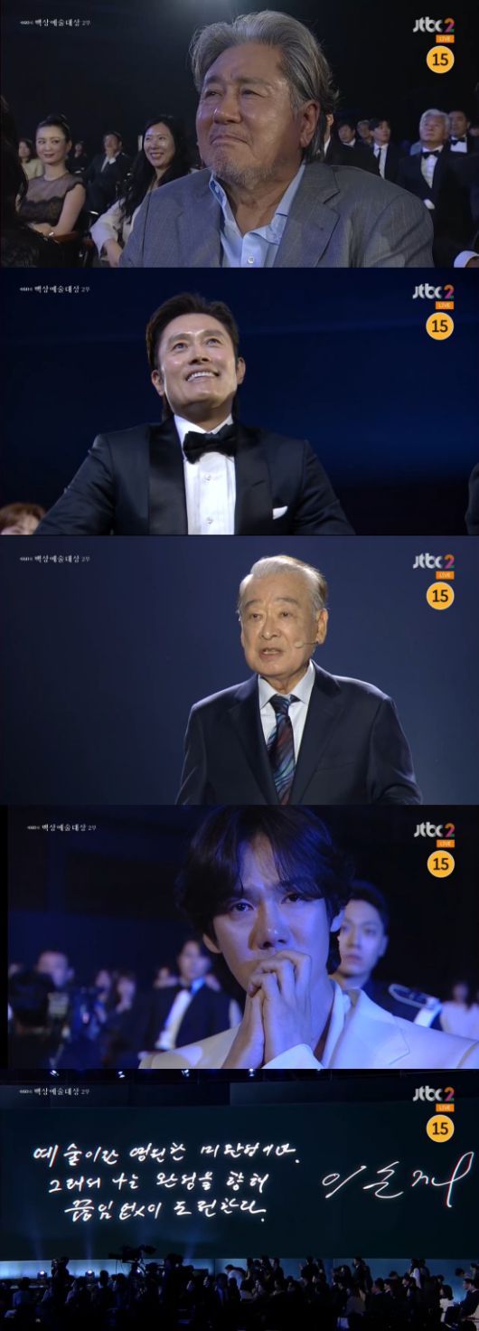 그러면서 "열심히 한 배우로 기억해주시면 좋겠다"고 말한 이순재는 자유연기를 선보였고, 참석한 전원이 기립박수를 쳤다. 특히나 유연석은 눈물을 보였고, 엄정화도 눈시울을 붉히는 모습을 보여줬다.