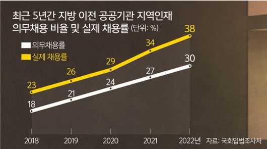 전남지역 한 공기업엔 전남대 출신들의 모임이 있다. 국립대인 해당 대학 출신 직원들이 가끔 만나 식사하는 일종의 친목 모임이다. 이 공기업에서 2018년부터 2023년까지 채용된 신입사원의 59%는 전남대 출신. 각 지방 혁신도시로 이전한 공공기관이 해당 지역 대학 출신을 뽑도록 한 ‘공공기관 지역인재 의무채용제도’ 때문이다. 전남대 관계자는 “해당 공기업과 관련 있는 학과엔 지역인재 의무채용 제도를 염두에 두고 대구와 경북, 서울 등에 있던 학생이 이곳으로 입학하는 경우도 있다고 들었다”고 전했다. 경북지역에 있는 한국도로공사는 지난해 9월 신입사원을 채용했는데, 지역인재 합격자 46명 중 15명이 국립대인 경북대 출신이었다.