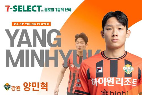 한국프로축구연맹은 9일 '세븐셀렉트 이달의 영플레이어상' 4월 수상자로 양민혁이 뽑혔다고 발표했다.