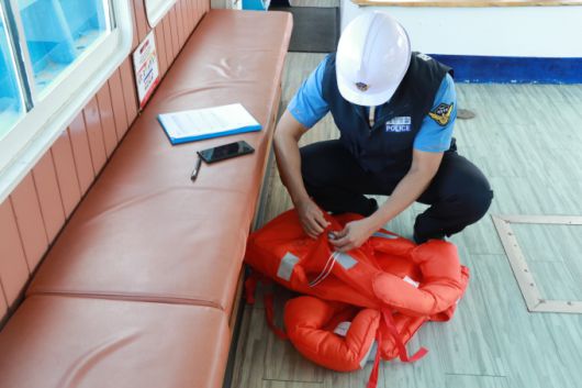 구명설비 등을 점검하고 있는 평택해경[사진=평택해경] |