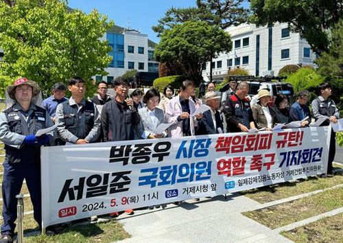 (거제=연합뉴스) 이준영 기자 = 경남 거제에 추진 중인 일제 강제징용 노동자상 설치가 최근 무산된 가운데 지역 시민사회단체가 박종우 거제시장과 서일준 국회의원의 책임 있는 역할을 촉구하고 나섰다.