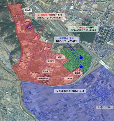 먼저 6월 10일까지 주거·상업권역 세척을 마무리하고, 아파트·공장권역은 같은 달 20일 작업을 시작해 8월 말까지 끝낼 예정이다.