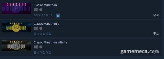 알레프 원 디벨로퍼는 지난 11일, 스팀에 '클래식 마라톤'을 무료로 출시했다. 클래식 마라톤은 번지의 고전 FPS 마라톤 트릴로지의 첫 번째 작품이다. 게임은 인류 최초의 '타우 세티'에서 인류의 첫 콜로니 궤도를 선회하는 우주선 UESC 마라톤에 침입한 외계인을 처치하고, 우주선과 선원을 지키는 이야기를 그린다.;