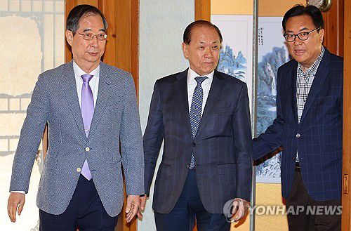 고위 당·정·대 협의회 참석한 한덕수 총리와 황우여 비대위원장 |