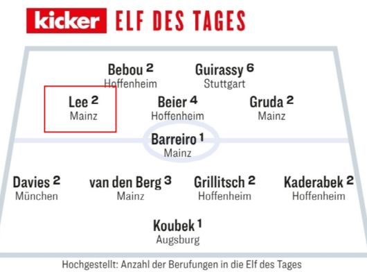 이어 "올 시즌 6골을 넣은 이재성은 7골의 부라카르트 다음으로 마인츠에서 가장 많은 골을 넣은 선수다"라면서 "열심히 뛰는 이 미드필더는 공격 뿐만 아니라 더 낮은 위치에서도 훌륭한 경기력을 보여줬다"라고 공수양면 돋보였다고 강조했다.