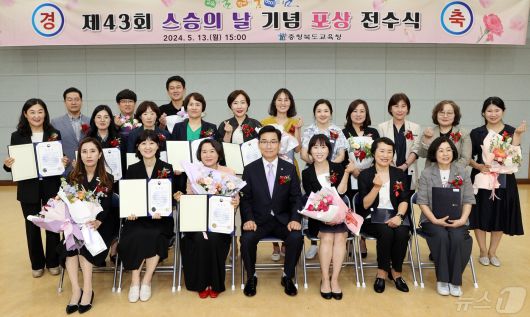 올해 스승의 날 기념 포상을 받은 교원은 △옥조근정훈장 박종원 기획국장 △대통령표창 손희순 괴산증평교육장, 임미랑 구정초등학교 교감, 김종열 금천중학교 교장 △국무총리표창 배상호 창의특수교육과장, 이윤희 정책기획과 장학관, 최우순 동성초등학교 교감 △교육부장관 표창 정은기 창신유치원 교사 등 94명 △교육감 표창 심유진 청원초등학교 교사 등 100명 △교육감(연공) 표창 박순희 생명중학교 교사 등 114명이다.