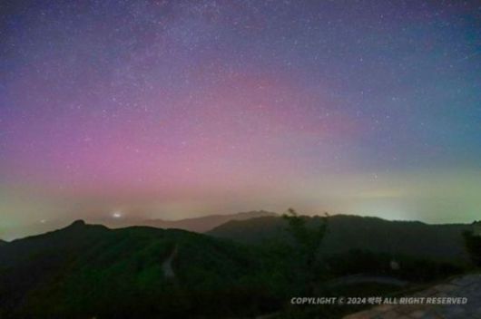 오로라는 한반도처럼 극지방과 떨어져 있는 중위도에서는 잘 보이지 않는다. 우리나라에서 오로라가 포착된 것은 지난 2003년 10월30일 보현산천문대에서 붉은색 오로라를 관측한 이후 약 21년 만이다. 2003년 당시에도 강력한 태양폭풍이 지구를 덮친 바 있다.