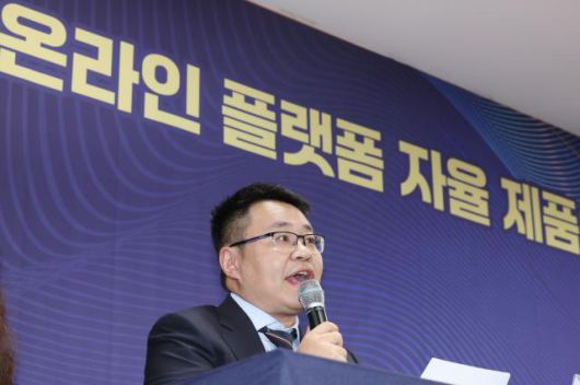 테무의 한국법인인 웨일코 코리아 퀸선 대표이사가 13일 오후 서울 용산구 한국소비자연맹에서 열린 해외 온라인 플랫폼 자율 제품안전 협약식에서 인사말을 하고 있다. [사진=연합뉴스] |